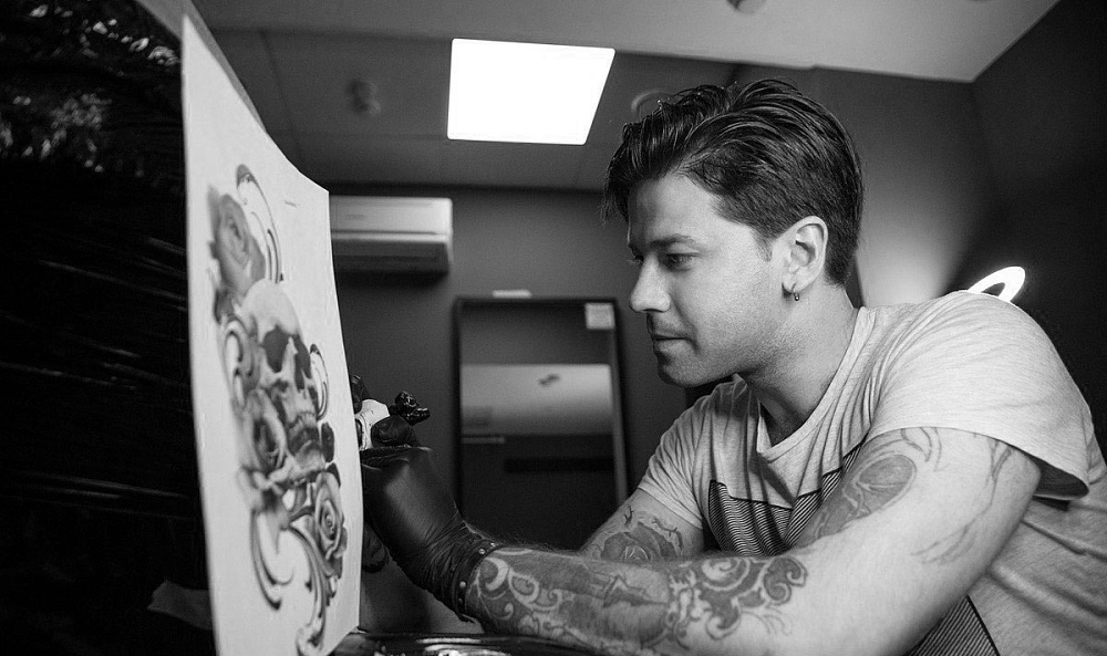 В татуировке считает главным гармоничное расположение и техничность рисунка, с учетом динамики тела.